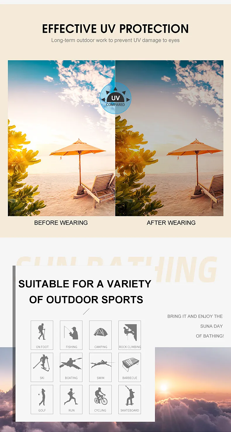 2. Elevated Style Statement: Beyond their protective benefits, quality polarized sunglasses are a fashion statement that can elevate your overall style. They come in a wide range of designs, frames, and lens colors, allowing you to express your personality and stay on-trend. Whether you’re lounging by the beach, exploring the city, or hitting the hiking trails, these sunglasses add a touch of sophistication to any outfit, making them a must-have accessory for those who value both eye comfort and style.