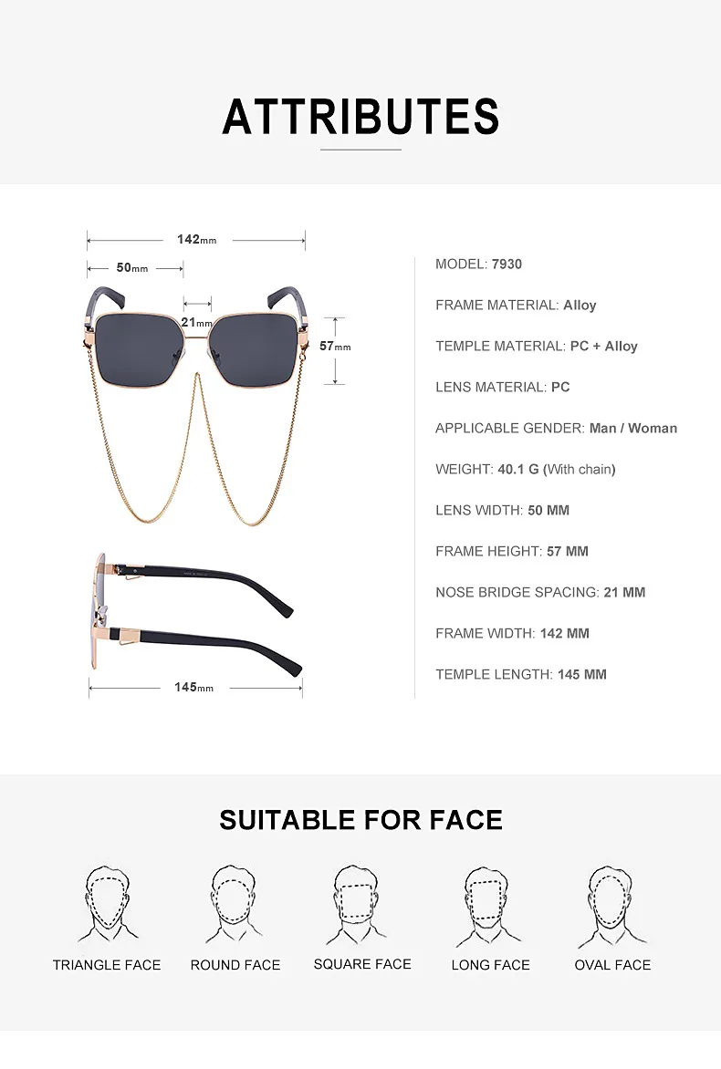 2023 New Dior Polarized Sunglasses Brand Chain Sun Glasses Ladies & Gentlemen Lanyard Necklace Square Glasses Fashion Luxury Shades Glasses